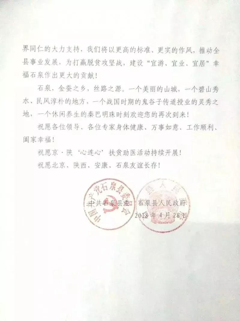 “京·陕‘心连心’扶贫助医石泉行”活动圆满落下帷幕