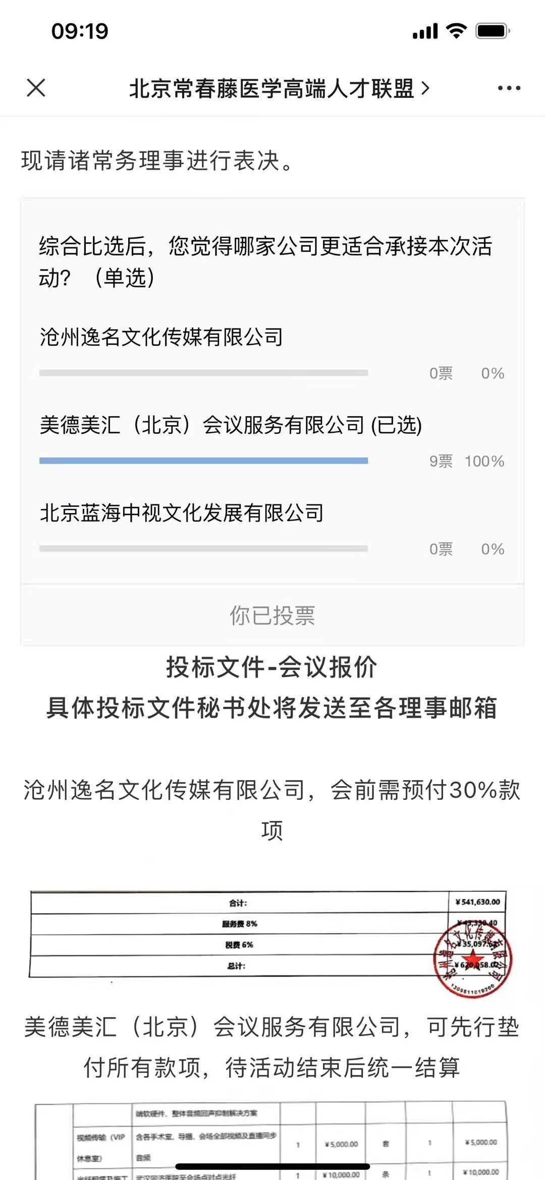 针对会议召开,前期进行了会议会务公司综合比选。参与此次投标的会务公司分别为沧州逸名文化传媒有限公司、美德美汇(北京)会议服务有限公司、锐意军创(北京)文化传媒有限公司。其中经联盟理事会表决,美德美汇(北京)会议服务有限公司中标,先予公示如下: